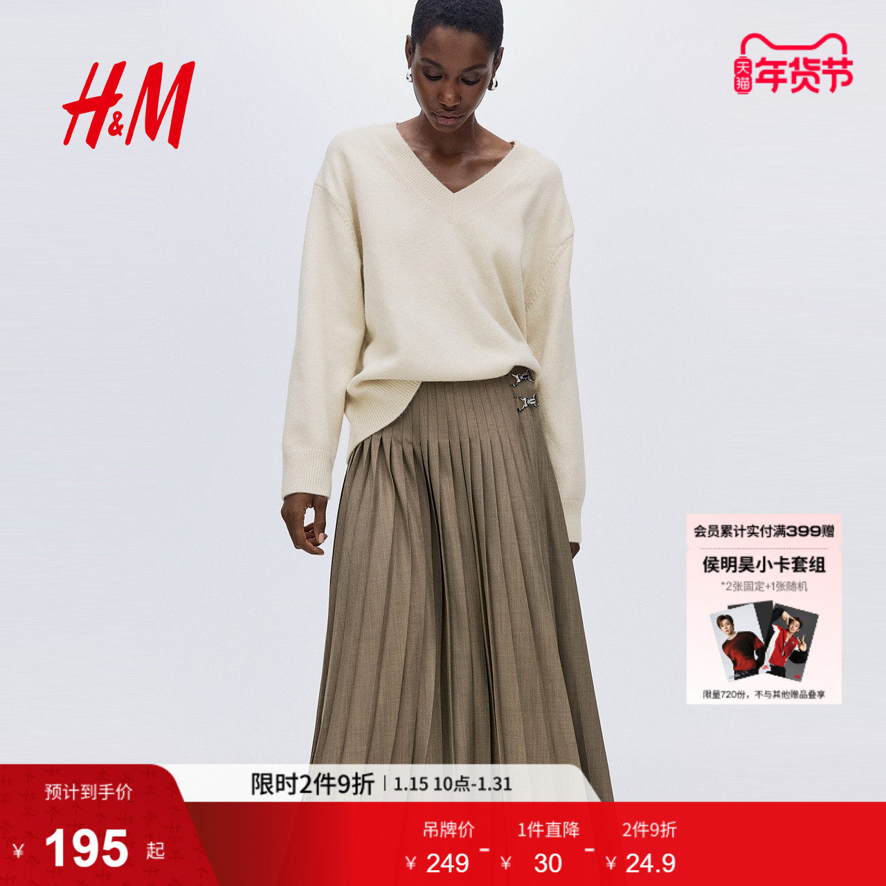 HM女装毛针织衫冬季保暖休闲内搭大廓形V领套衫打底衫1303131