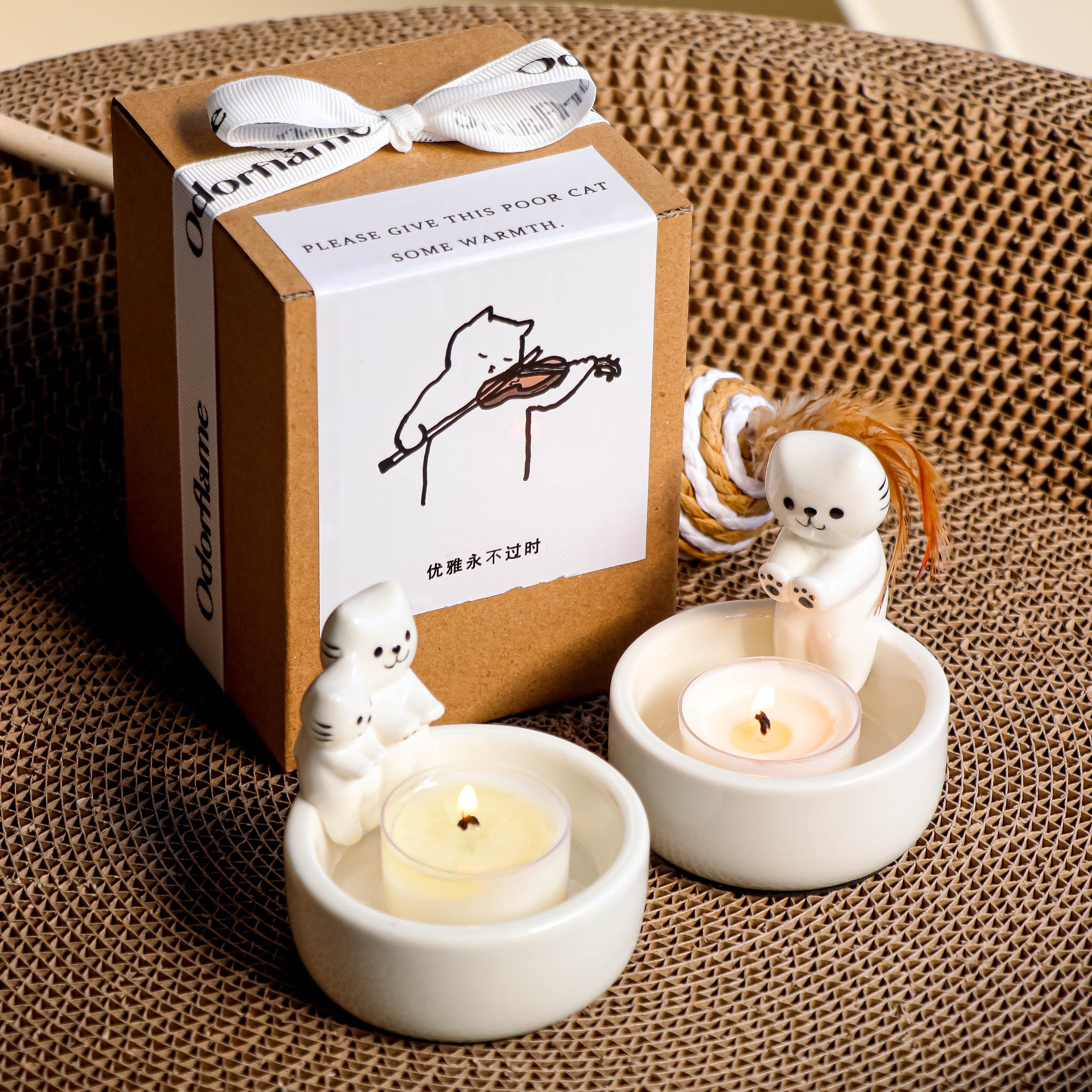 《优雅喵喵》可爱烤手小猫香薰蜡烛烛台礼盒摆件送女生生日礼物盒
