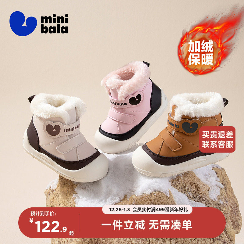 巴拉巴拉婴儿学步鞋儿童休闲鞋女童加绒保暖男童鞋子冬季新款童鞋