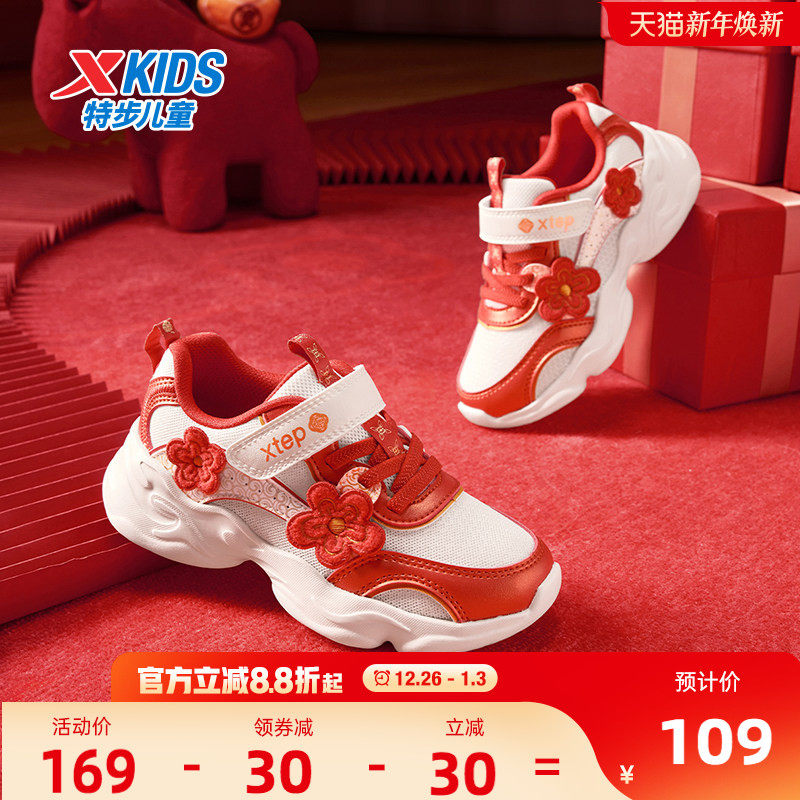 福燈贺岁|特步童鞋儿童休闲鞋女童新年款正品防滑耐磨小童运动鞋