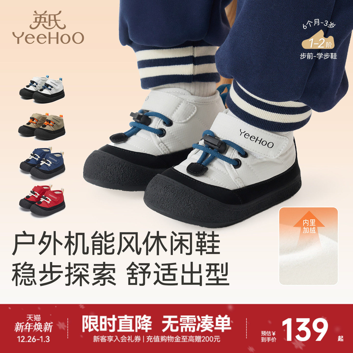 英氏宝宝加绒学步鞋子秋冬童鞋休闲鞋保暖男童女童百搭新款运动鞋