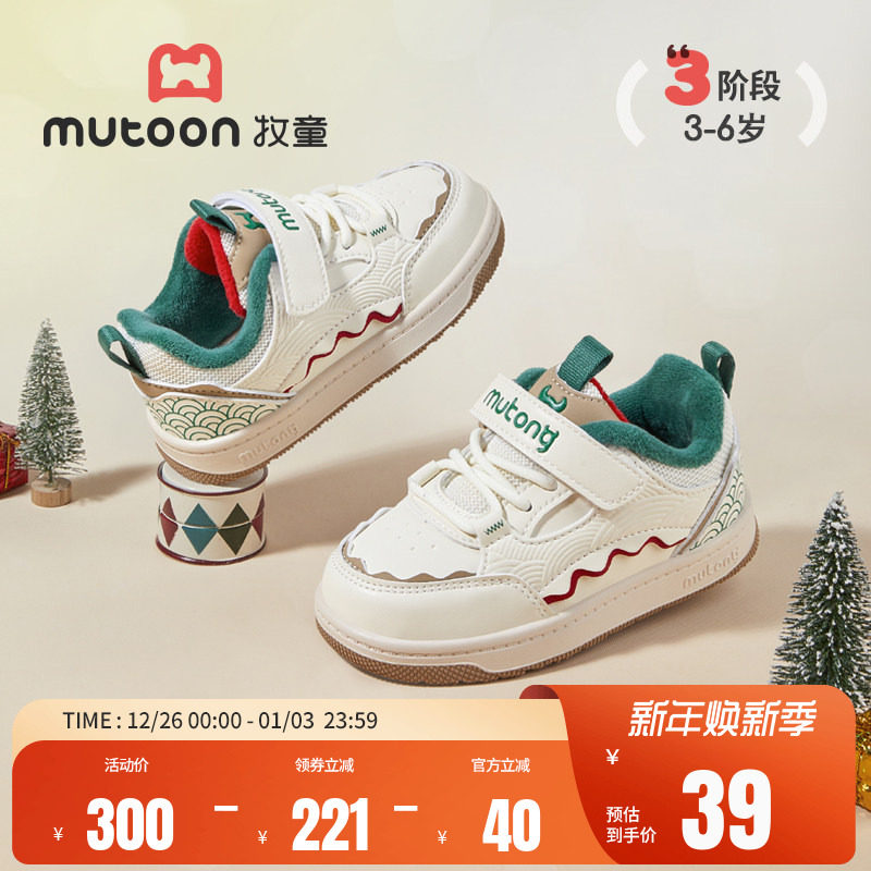 牧童儿童板鞋男童冬季轻便缓震小高帮童鞋加绒保暖女童鞋休闲棉鞋