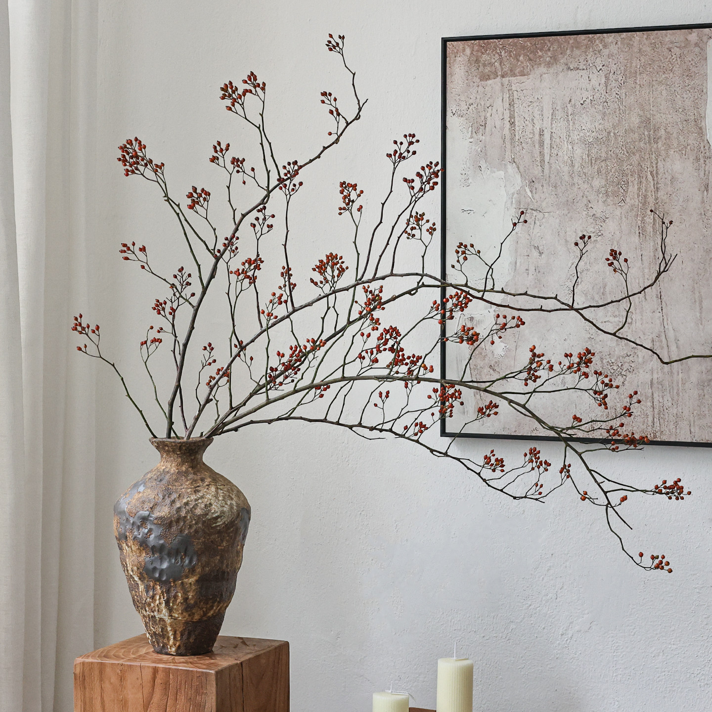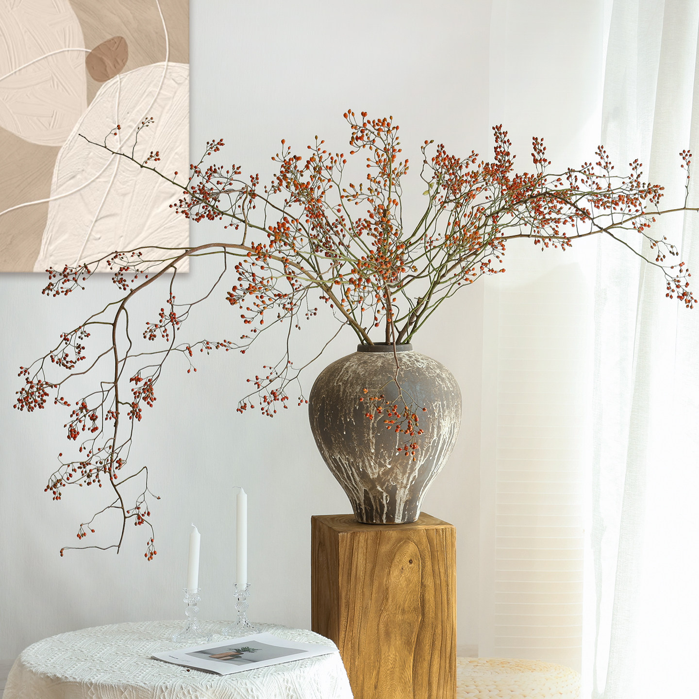 山归来红果永生花干花花束客厅摆设干树枝玄关插花天然高级感真花