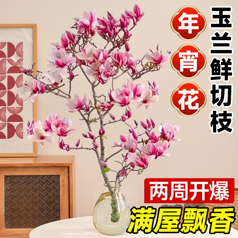 玉兰花水培植物带花苞鲜花真花插花室内花卉绿植干花花束客厅摆设