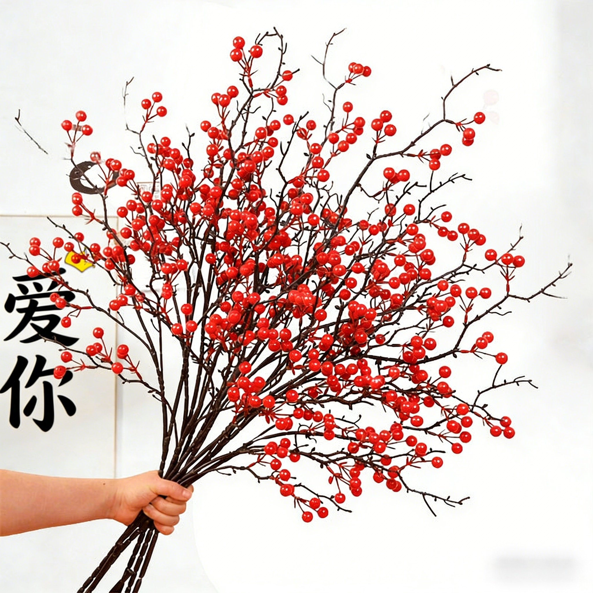 年宵花冬青红果发财果仿真花假花摆设干花花束客厅过年装饰花摆件