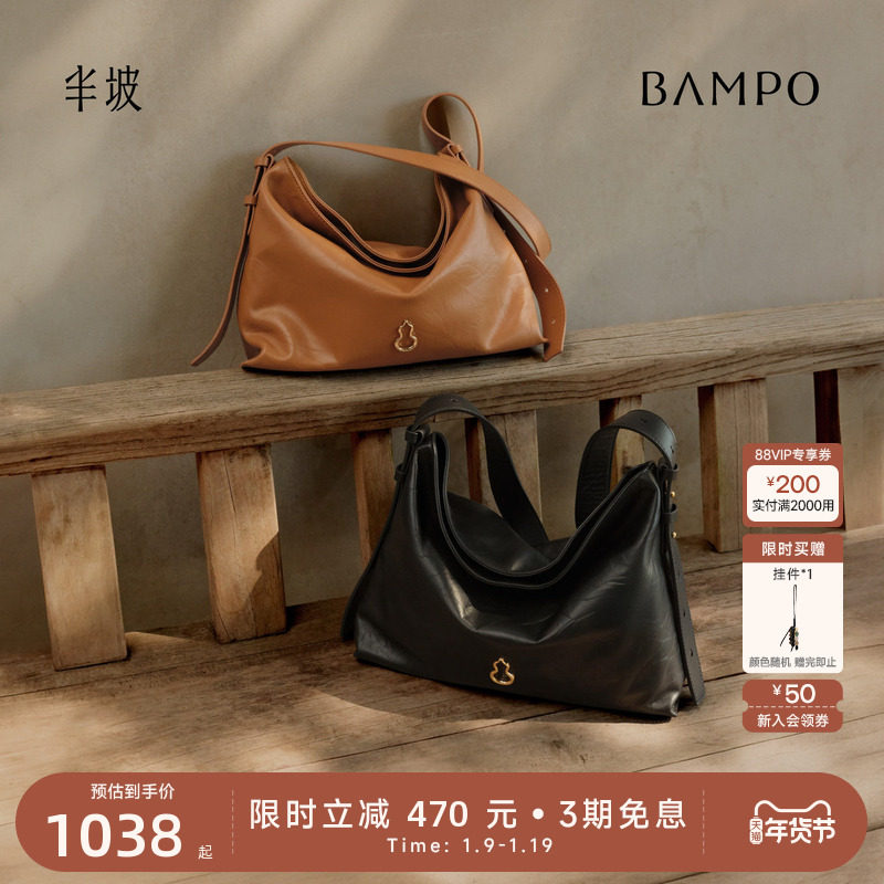 【明星同款】BAMPO半坡金元HOBO包 头层牛皮腋下包新款质感斜挎包