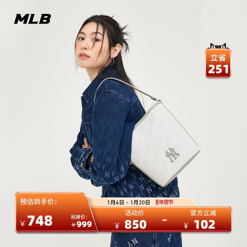 MLB官方 情侣暗纹老花水桶包明星同款时尚斜挎包秋冬BML02