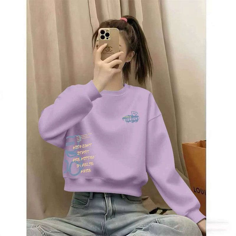 毛圈圆领短款卫衣 春秋新款高腰显瘦女长袖宽松休闲套头上衣05133