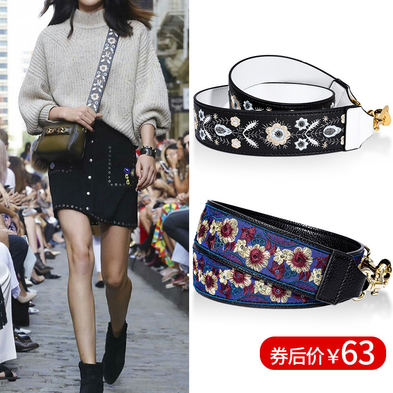 宽带牛皮刺绣包带替换单肩斜挎真皮背包女包配件带子包包手袋肩带