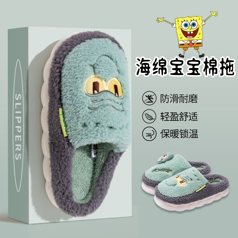 海绵宝宝棉拖鞋男冬季2025新款可爱室内居家居情侣毛绒棉鞋女冬天