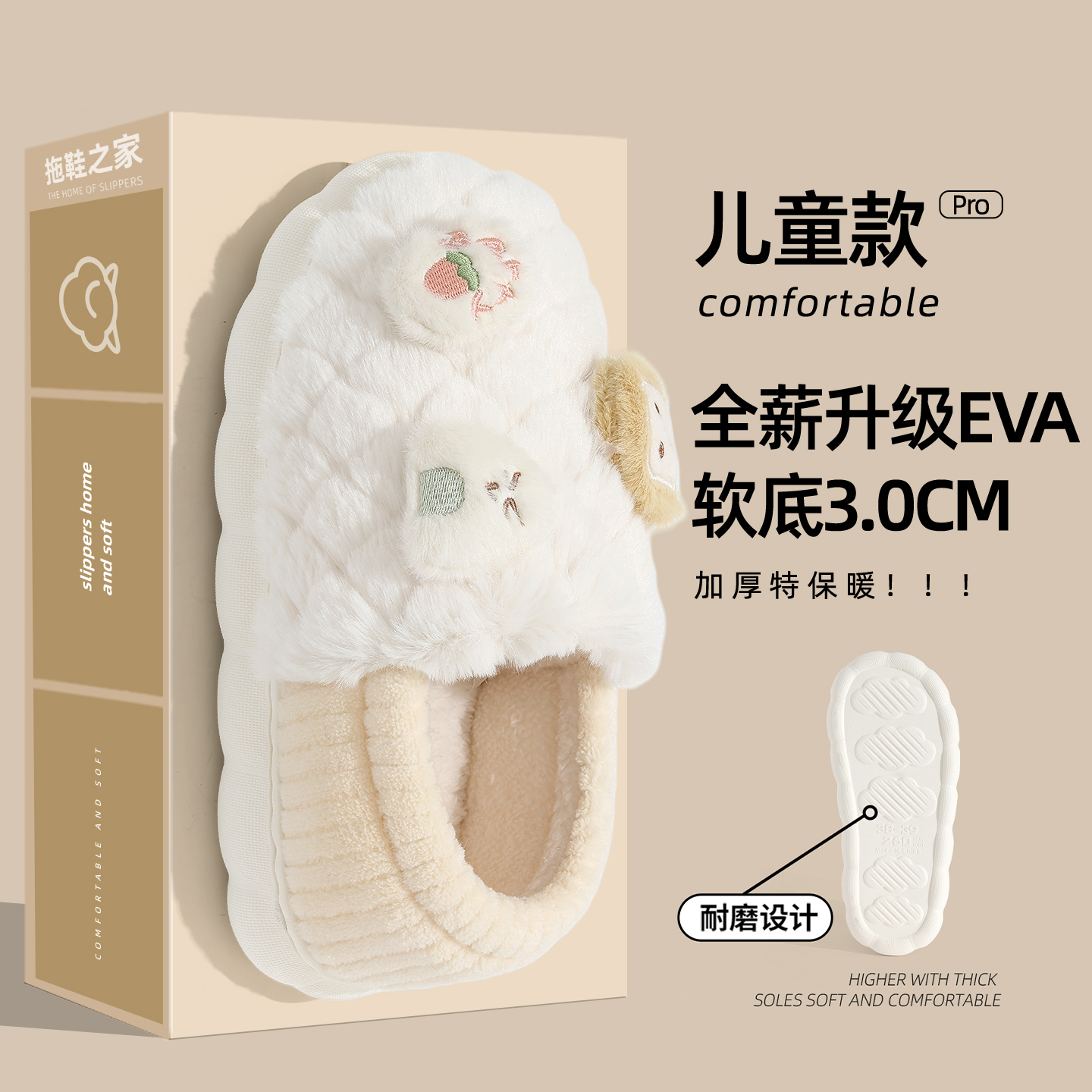 包跟儿童棉拖鞋女童秋冬2025新款保暖毛毛绒棉鞋女孩家居宝宝拖鞋