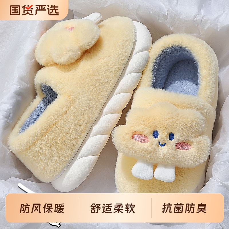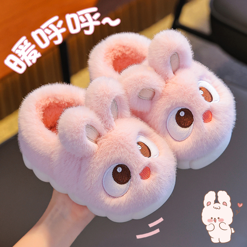 可爱小兔棉拖鞋秋冬季2025新款家居舒适厚底防滑保暖毛绒棉鞋女款