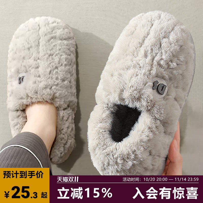 远港毛绒棉鞋女2025新款秋冬季室内居家保暖全包跟一脚蹬棉拖鞋男
