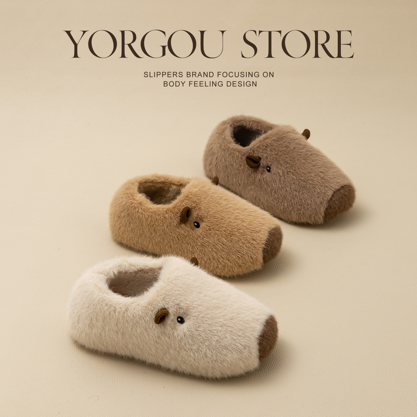 远港卡皮巴拉毛绒棉鞋女2025新款冬季室内居家保暖包跟毛毛棉拖鞋