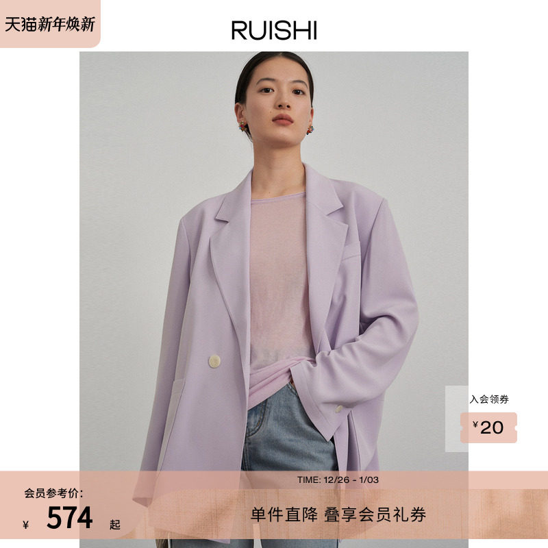 RUISHI芮时 仿醋酸质感可拆垫肩西装外套女薄款上衣套装春夏