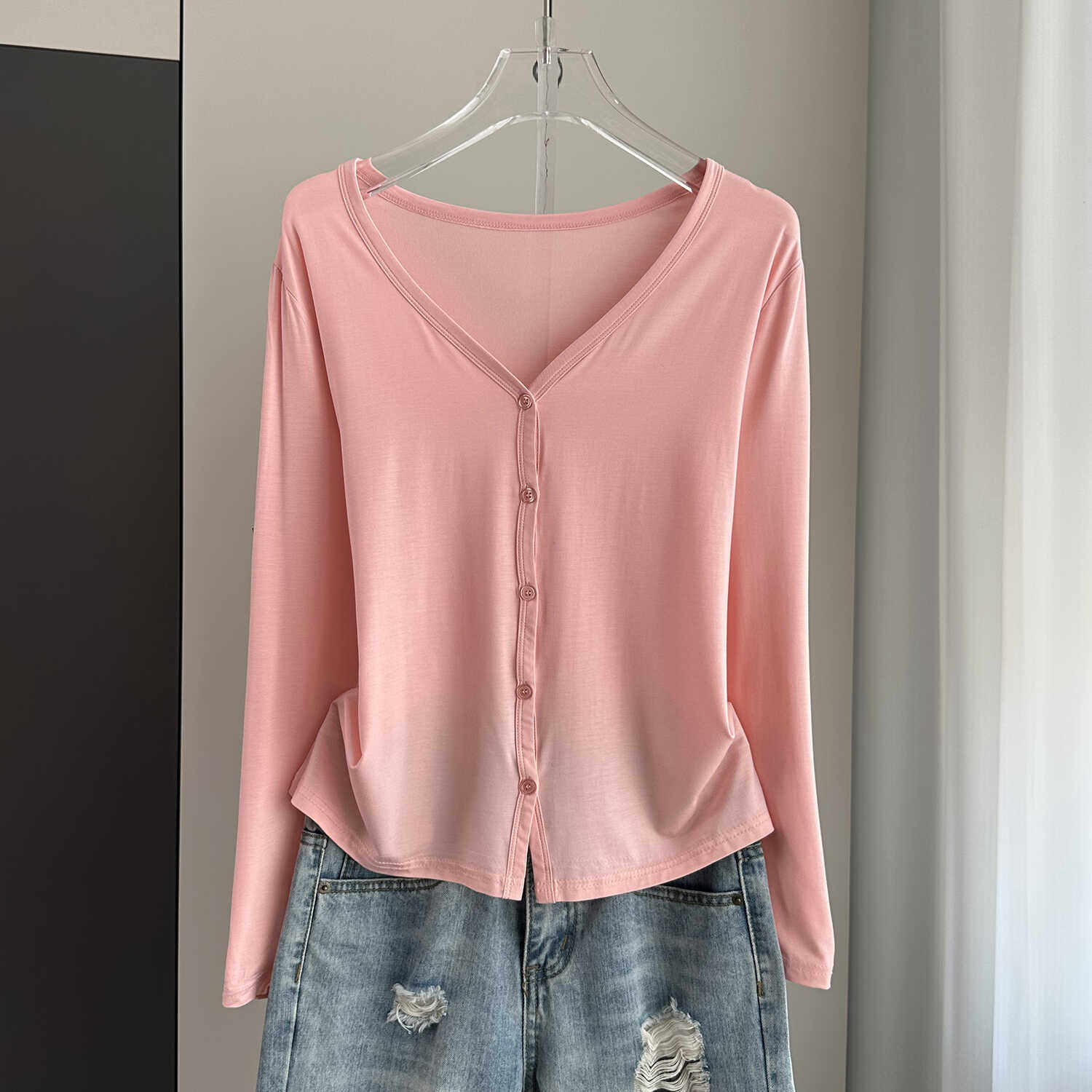 灰色莫代尔防晒开衫外套女薄款夏季吊带外搭宽松v领长袖空调罩衫