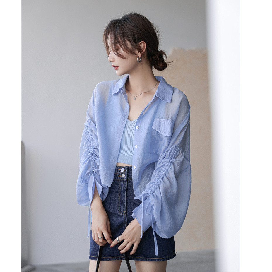简约新款女装防晒衬衫外套女薄款夏季新款设计感小众短款抽绳上衣