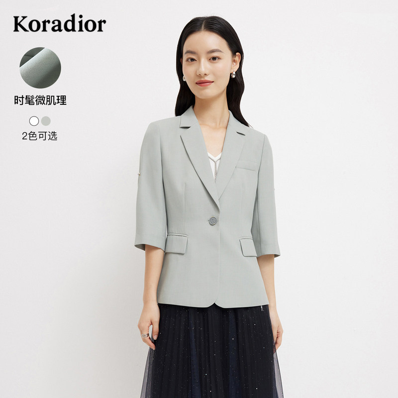 koradior珂莱蒂尔白色简约七分袖西装外套女薄款职业通勤西服