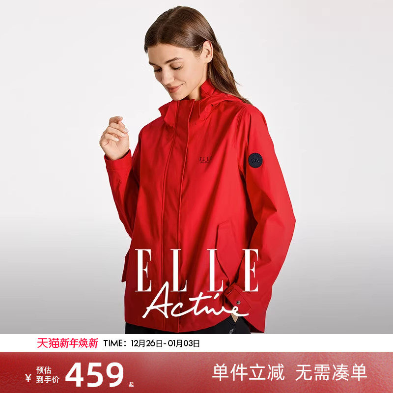ELLE Active风衣外套女薄款2025新款红色外套女时尚洋气时髦夹克