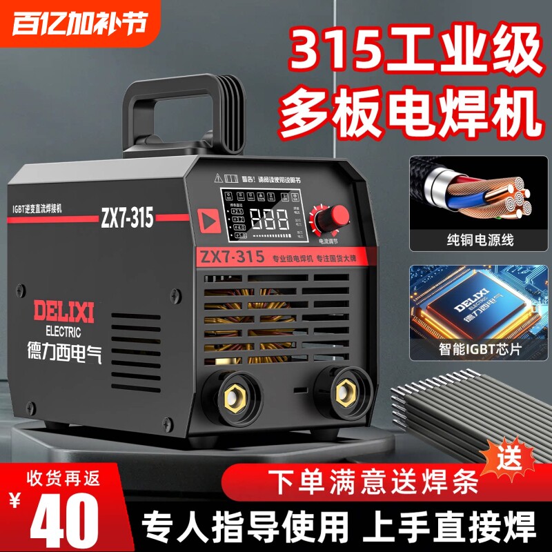 德力西电焊机220v家用380v工业级315便携不锈钢纯铜两用小型焊机