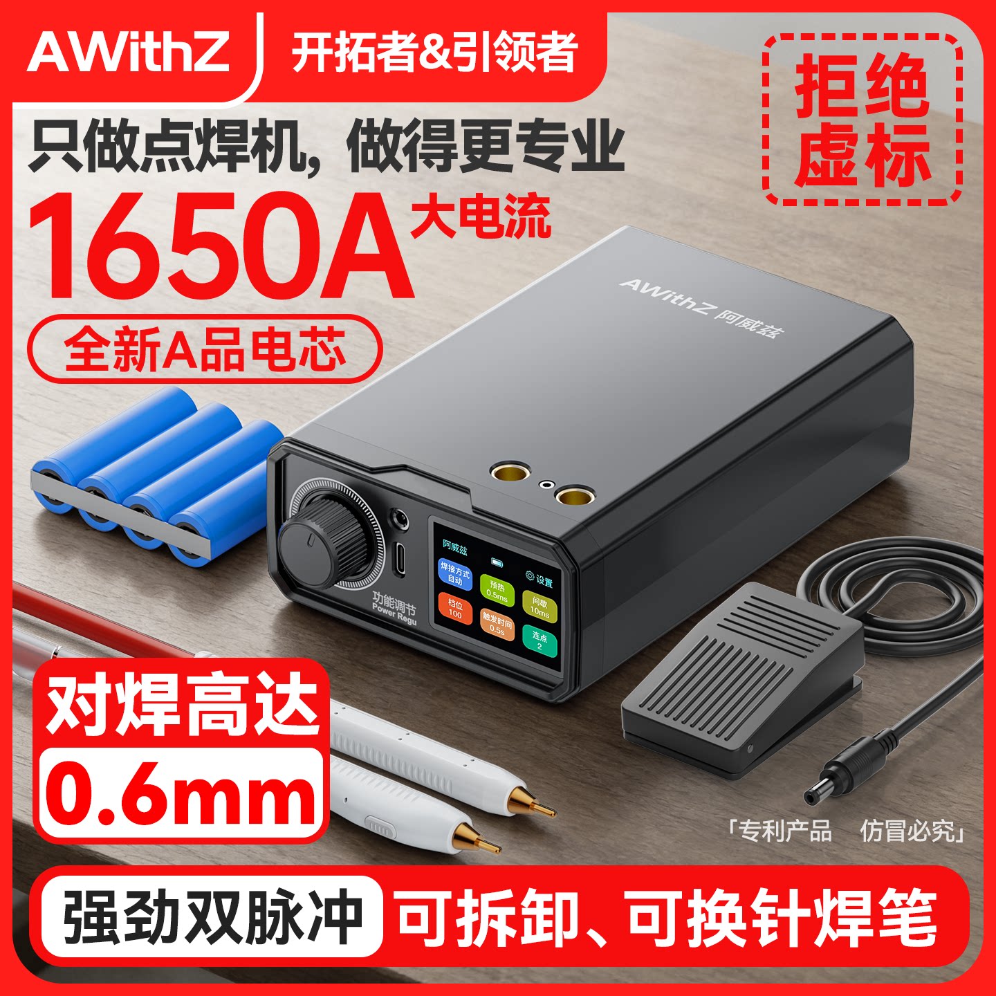 AWithZ点焊机手持小型家用便携式18650锂电池diy套件镍片碰电焊头