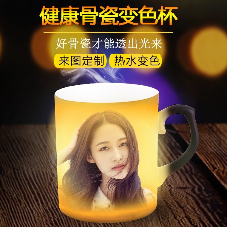 diy加热水骨瓷变色杯定制可印照片创意520礼物情侣创意马克水杯子