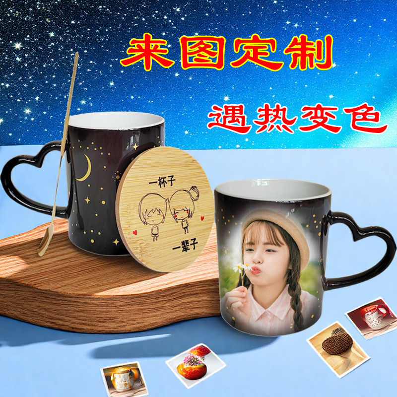 diy加热变色杯子创意可印照片马克水杯陶瓷定制情侣个性带盖潮流