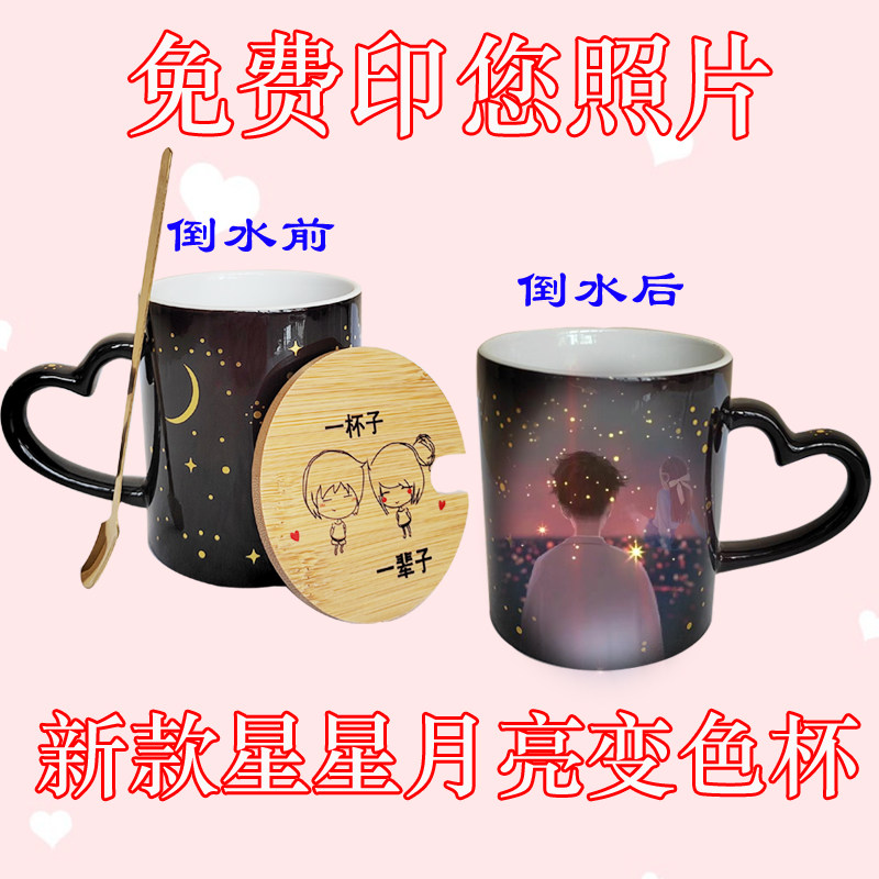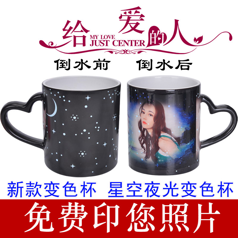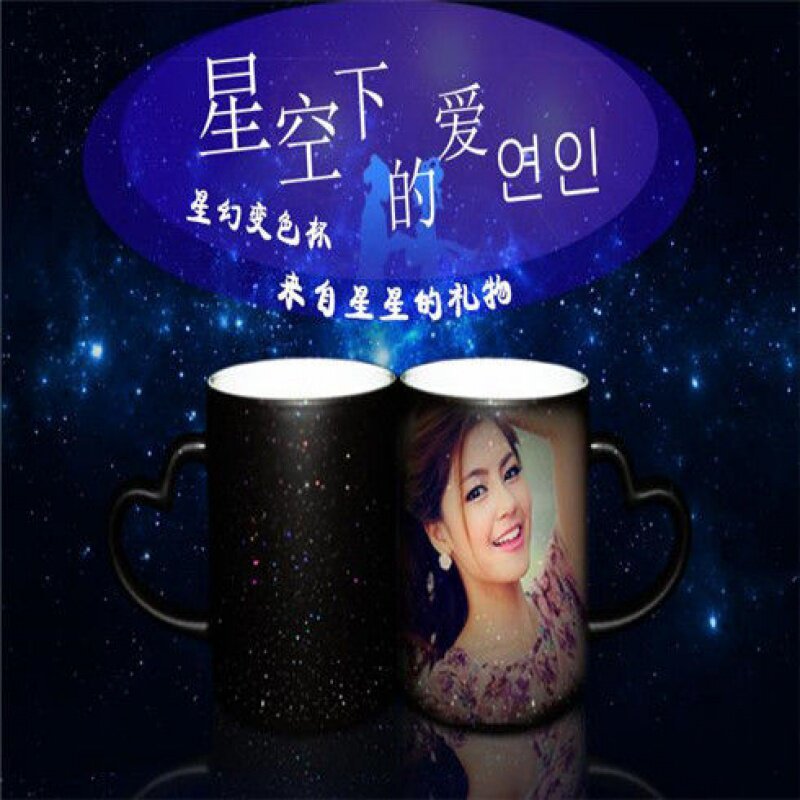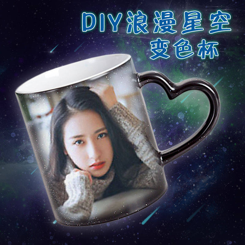 diy定制可印照片夜光星空遇热加热变色个性水杯创意陶瓷茶杯刻字