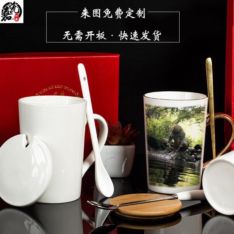 创意diy马克杯定制印图照片杯子不变色陶瓷水杯毕业生日礼物盖勺