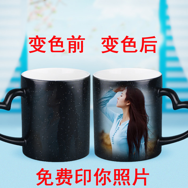 diy定制印照片马克陶瓷水杯女神节情侣遇热变色杯子创意生日礼物