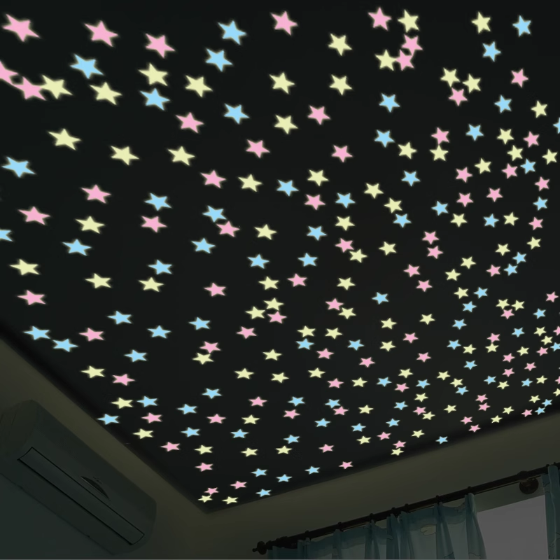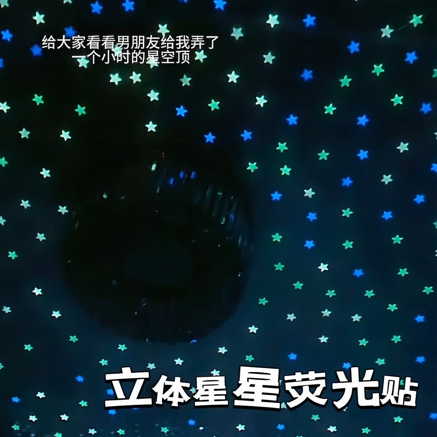 3D立体星星夜光贴荧光贴纸天花板卧室儿童房间吊顶装饰自粘墙贴画