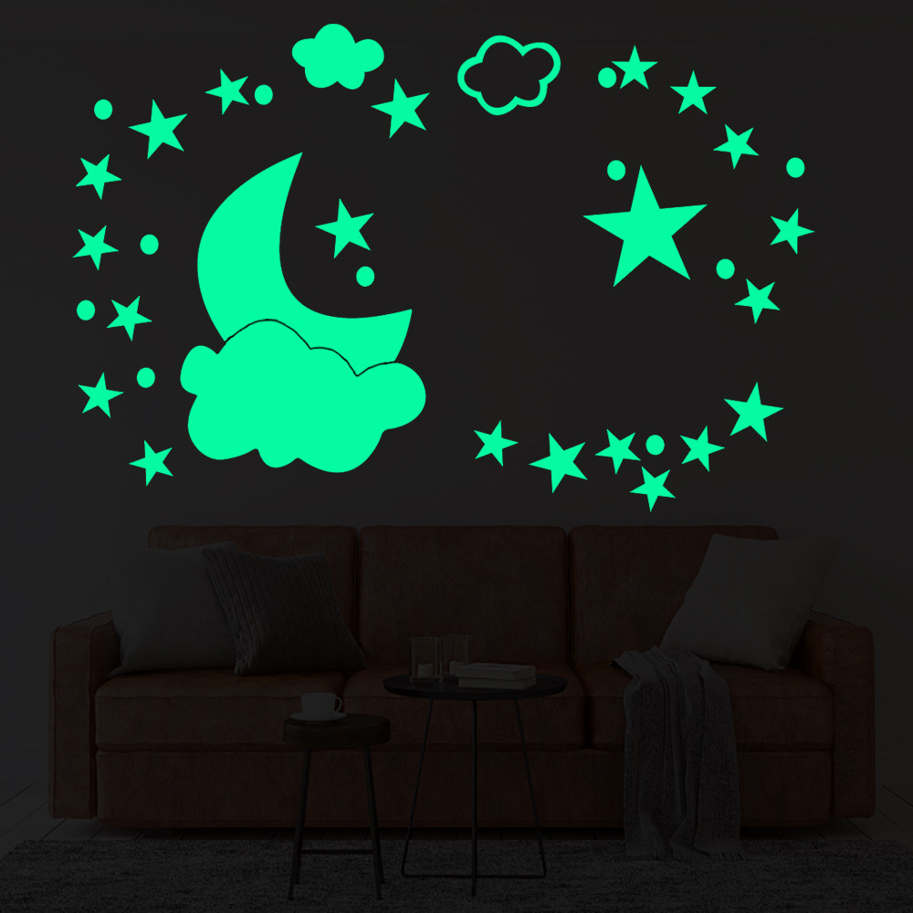 月亮云朵夜光星星墙贴儿童房墙面装饰卡通发光贴画客厅卧室荧光贴