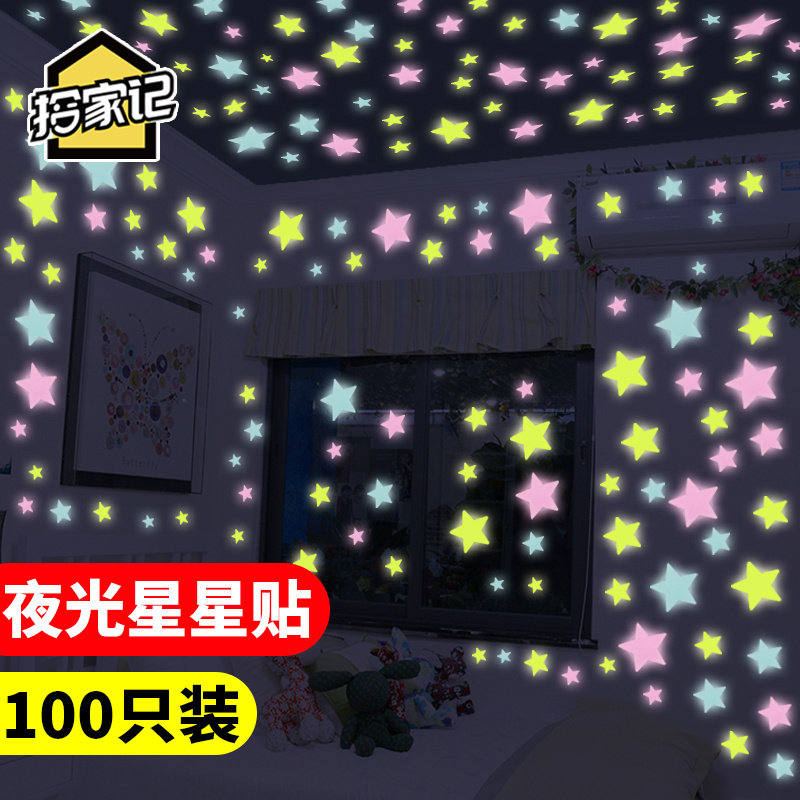 夜光星星墙贴夜光贴儿童房卧室客厅天花板房间装饰品3d立体荧光贴