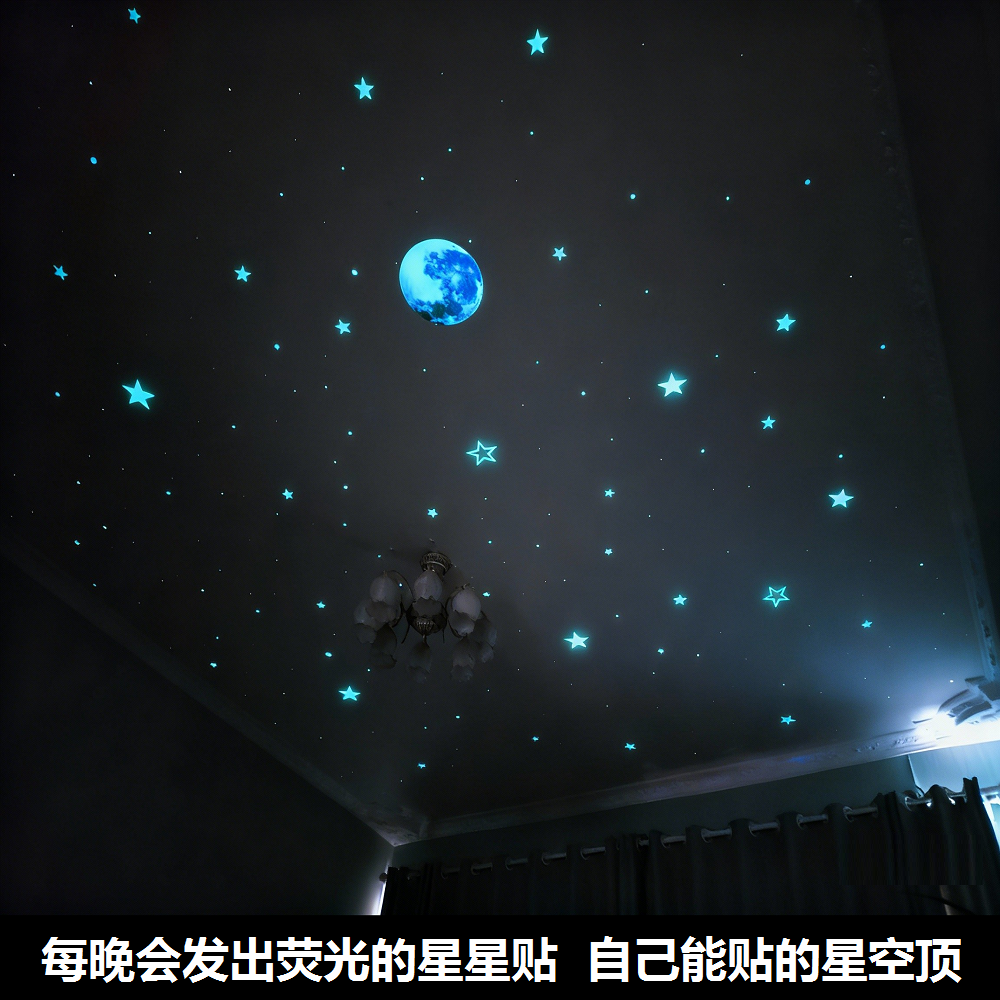 自粘夜光贴星星月亮儿童房寝室宿舍卧室家居天花板荧光墙贴纸装饰