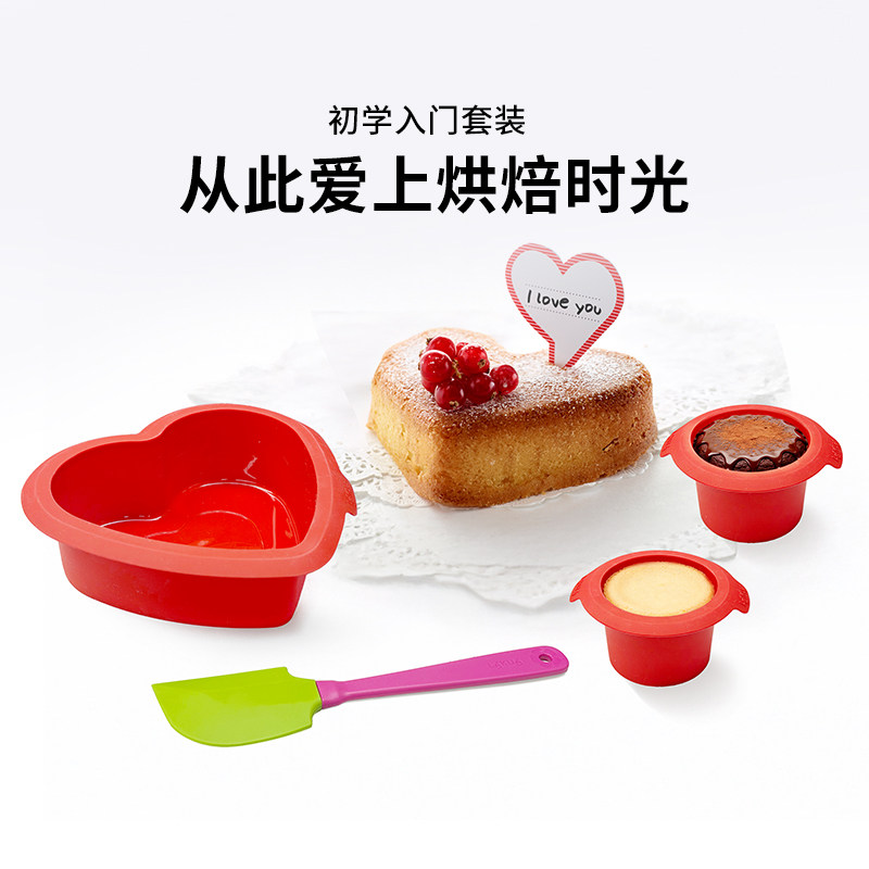 LeKue乐葵心型烘焙模具套装铂金硅胶家用烤箱用具蛋糕新手磨具4件