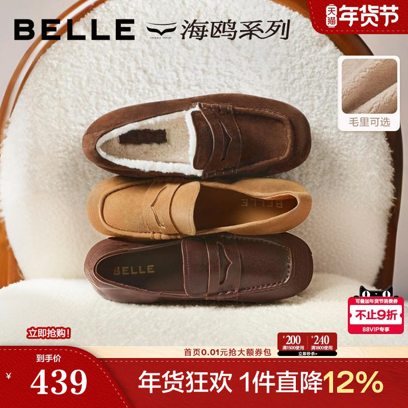 明星同款百丽肉桂卷一脚蹬乐福鞋女新款豆豆毛毛单鞋子E1W1DC