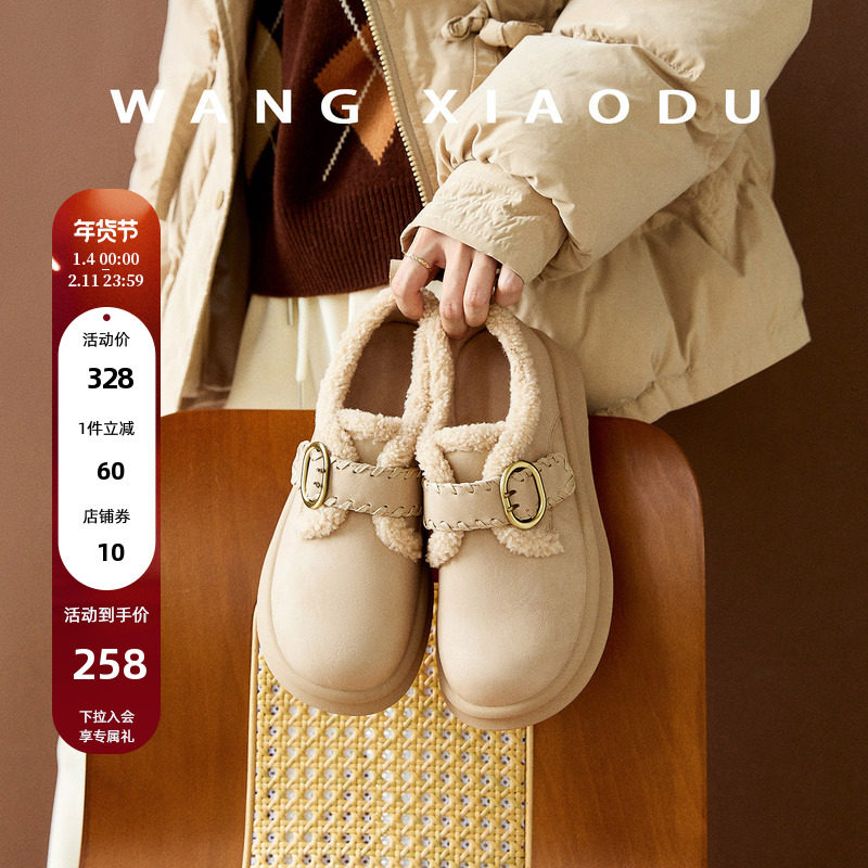 百丽厚底增高复古加绒乐福勃肯棉鞋女商场冬季雪地靴毛毛单鞋子预