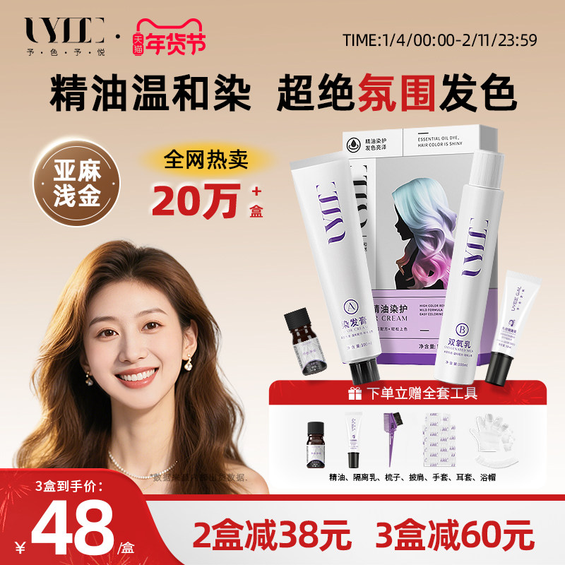 Uyee予色予悦染发膏亚麻浅金染发剂香槟浅金蜜糖灰棕金黄色奶茶棕