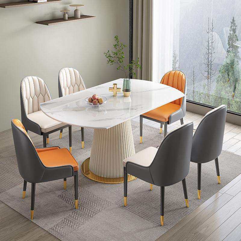 岩板餐桌椅组合家用小户型圆形饭桌现代简约高级感洽谈餐桌椅组合