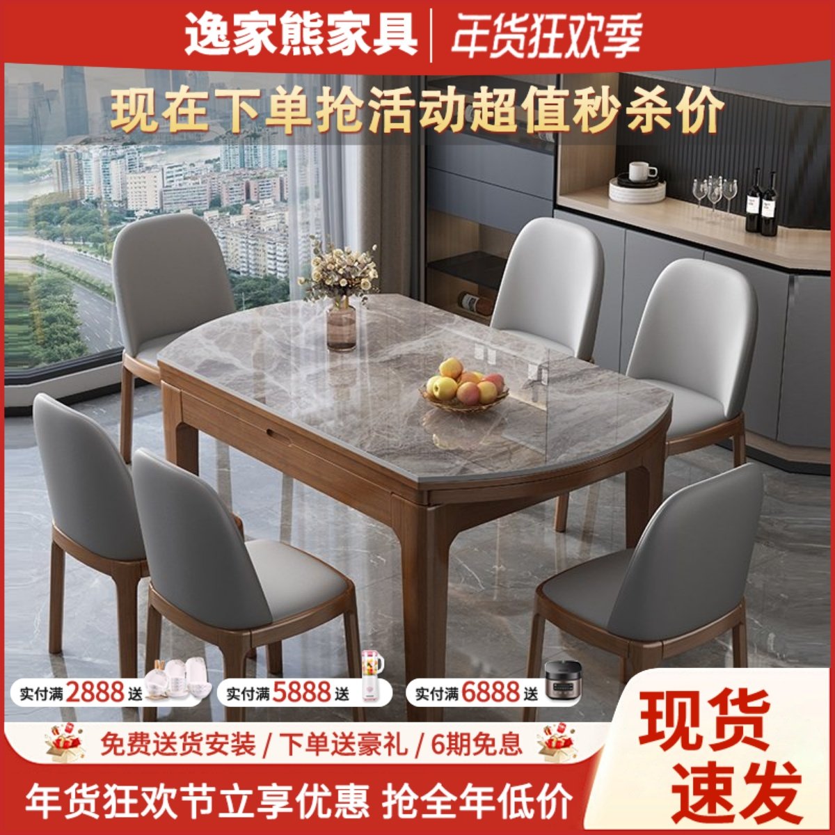 政府补贴岩板餐桌椅组合家用小户型现代简约实木伸缩可变圆桌新款