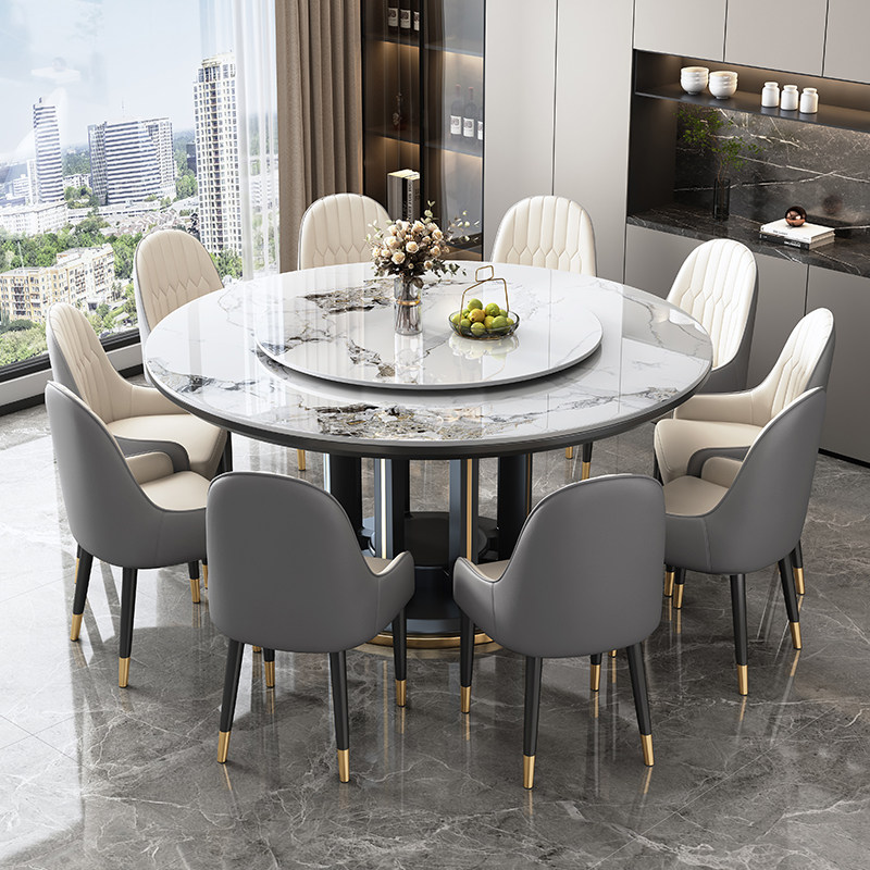 岩板餐桌椅组合现代简约2025新款圆形酒店家用小户型大圆桌饭桌子
