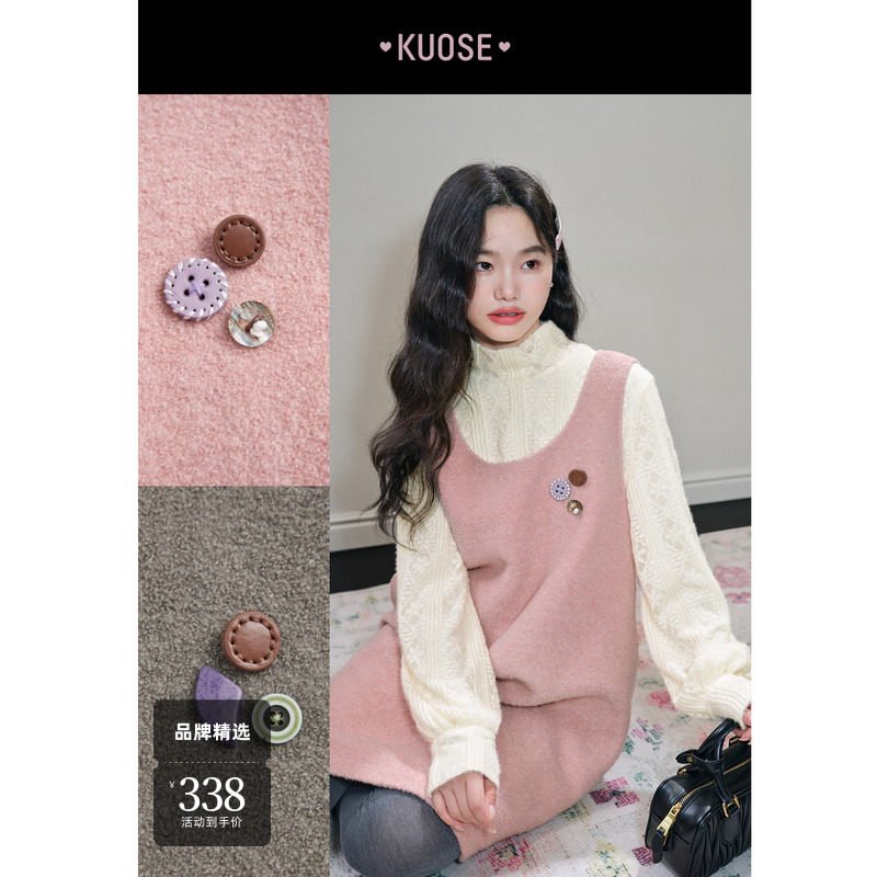 阔色粉色氛围感穿搭背心裙短裙女2025秋冬季新款毛呢连衣裙子春