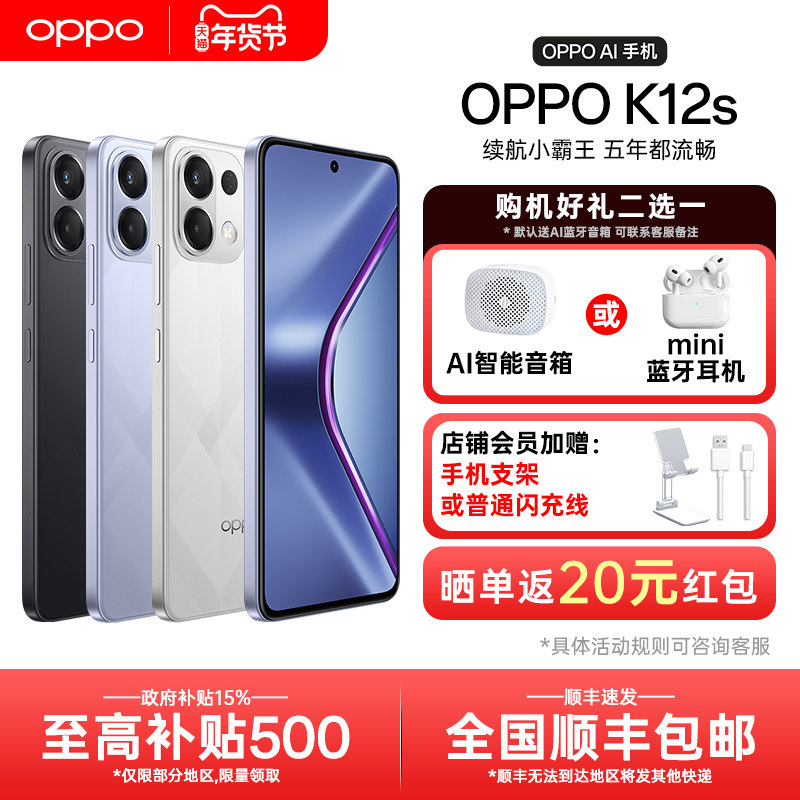 OPPO K12s 5G智能手机AI手机学生备用机老年机新款游戏正品官网国家补贴手机官方旗舰店oppok12s