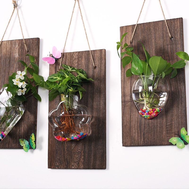 实木创意家居墙上悬挂式花瓶玻璃培绿墙面小装饰水萝植物背景壁挂