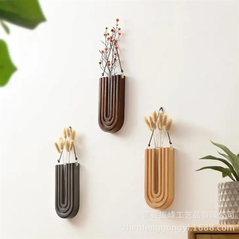 实木壁挂式花瓶上墙面花器水培绿植免打孔客餐厅沙发背景玄关装饰
