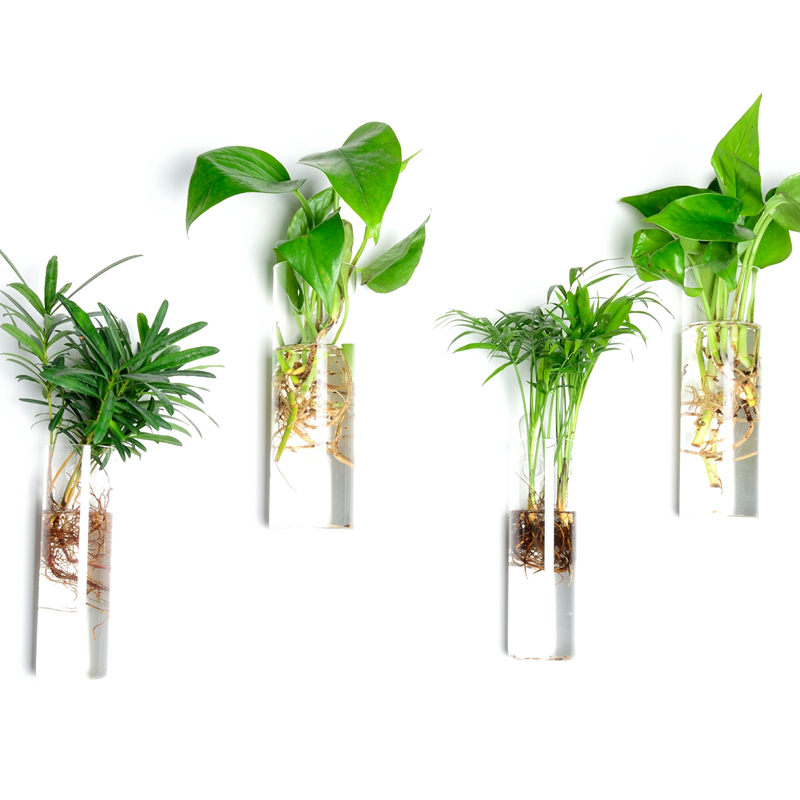 DIY创意圆柱壁挂式富贵竹透明玻璃水培植物花瓶花插居家室内装饰