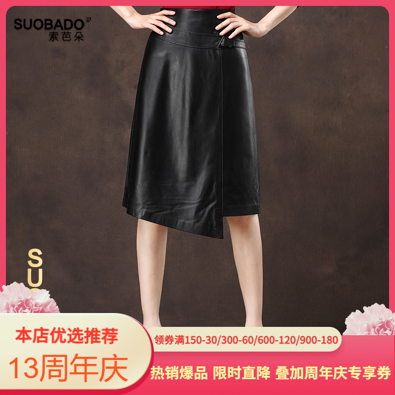 海宁真皮半身裙女2025秋冬百搭高腰不规则中长款皮裙绵羊皮A字裙