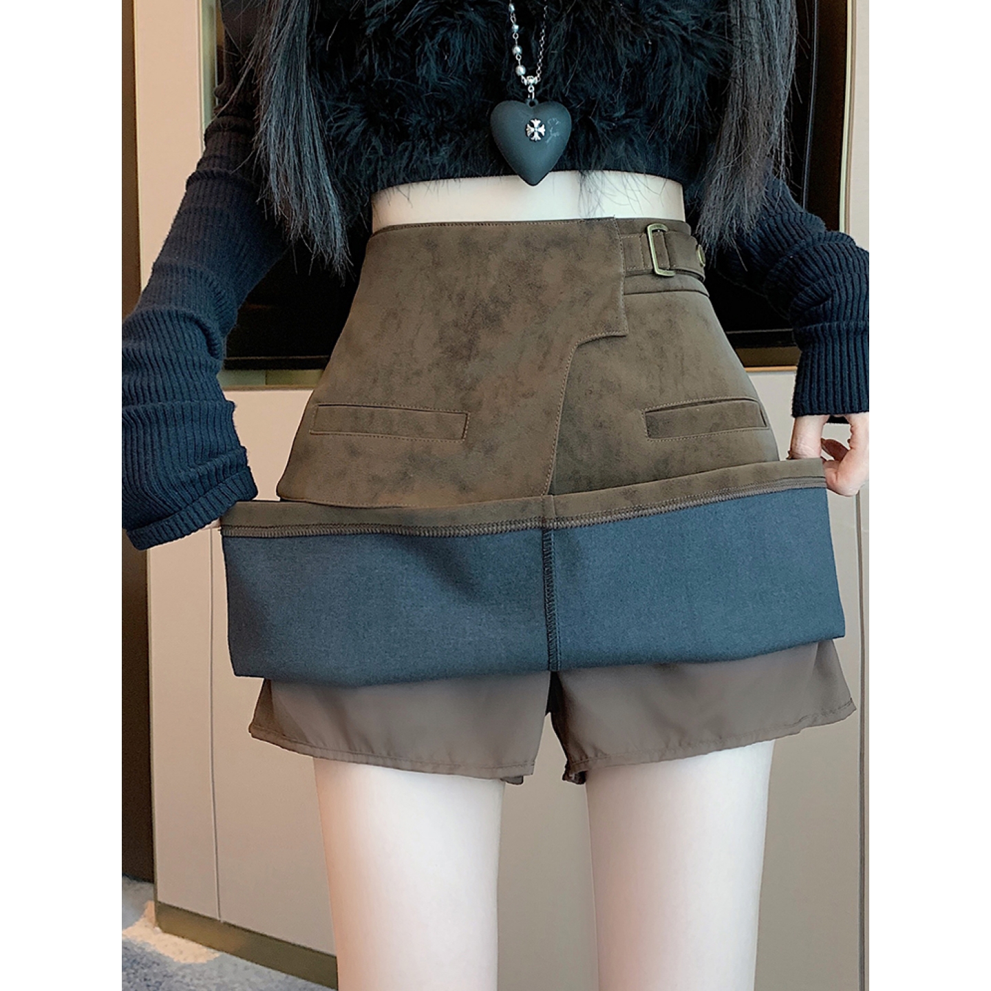 PU皮裙百褶裙裤女2025秋冬不规则裤裙大码高腰显瘦百搭A字短裙