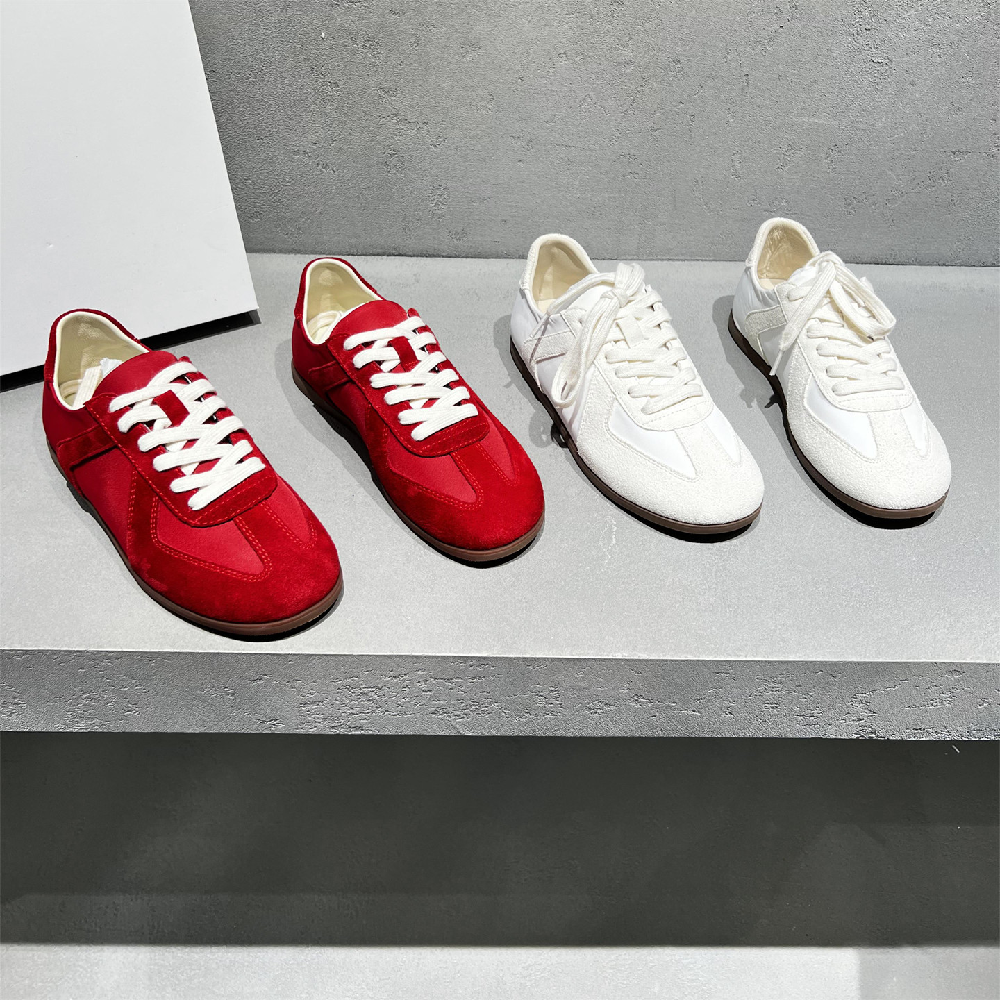 欧洲站女鞋2026春新款欧货真皮系带平底德训鞋韩版休闲运动鞋板鞋