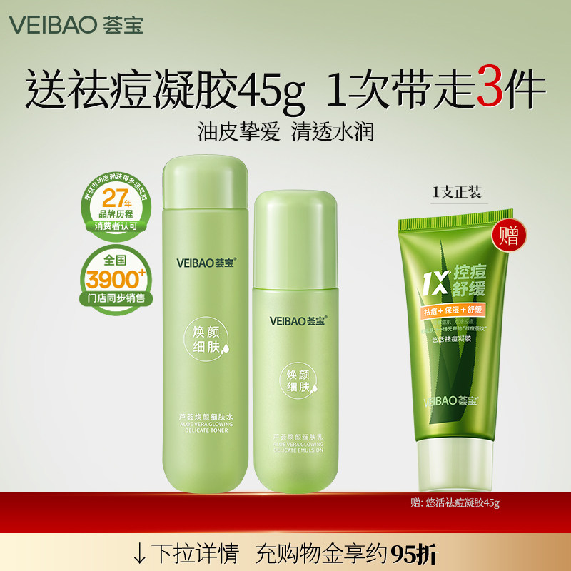 荟宝焕颜芦荟平衡细致精华水乳护肤补水保湿清洁毛孔正品旗舰店女